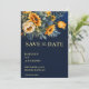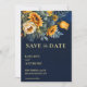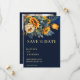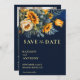 Marinho escuro, azulejo, girassol, casamento outono, modelo de foto do , salvar o convite de data, casamento outono de verão salvar a data do casamento entre os temas azul e amarelo