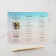 O modelo de foto de cena de praia dobrou o programa de casamento. Programa de cerimônia de praia a ser dobrado em três após a compra. Adicione uma foto especial do casal, que aparecerá na frente de programas longos e dobrados. Adicione facilmente a sua redação a três seções sobre uma imagem de fundo do mar e da areia. Starfish vestido de noiva e noiva decoram a primeira página. A mesma água turquesa e imagem de areia da praia cobrir a parte de trás deste papel.