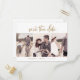 Este modelo de foto rústico de guião de ouro 3 salvou o cartão postal da data é perfeito para um casamento country. O simples e moderno design de ouro e branco apresenta uma única caligrafia manuscrita branca com estilo de boho minimalista contemporâneo. Personalizável em qualquer cor. Mantenha o design mínimo e simplista, como está, ou personalize-o adicionando seus próprios gráficos e trabalhos de arte.