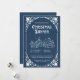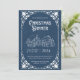 Defina o tom para uma celebração mágica de Natal com este convite de jantar de Natal em estilo retrô. Com um fundo azul clássico, bordas florais brancas intrincadas e uma encantadora ilustração de uma vila nevada, este design exala elegância atemporal. Perfeito para reuniões formais de Natal, jantares em família ou celebrações festivas, este convite é totalmente personalizável com os detalhes do seu evento. Impressione seus convidados com um convite lindamente projetado que captura a alegria e o calor da temporada de festas.