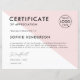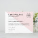Um simples modelo de certificado de logotipo de negócios cor-de-rosa e simples em um estilo moderno minimalista. O modelo versátil pode ser personalizado com o tipo de prêmio (certificado de conclusão, apreciação, reconhecimento, etc.) e detalhes adicionais para reconhecer os resultados ou a conclusão bem-sucedida de um curso ou tarefa para qualquer funcionário. Você pode carregar uma assinatura personalizada ou excluir e assinar manualmente.