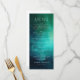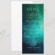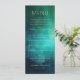 Este menu de casamento elegante apresenta um fundo azul-teal profundo com texto branco crocante, criando uma atmosfera sofisticada e convidativa. O layout é limpo e estruturado, com seções distintas para Aperitivos, Salada, Prato Principal e Sobremesa, cada uma destacada por tipografia serifada em negrito que adiciona um toque de formalidade. O amplo espaço em branco melhora a legibilidade, enquanto o design minimalista se concentra na experiência gastronômica cuidadosamente selecionada. Perfeito para eventos especiais, este modelo oferece espaços personalizáveis para nomes e datas, garantindo que possa ser adaptado a qualquer celebração.