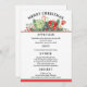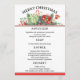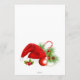 Cartão de Natal com um design festivo branco, em vermelho clássico e verde, com pinhões, bagas e presentes e um chapéu de Papai Noel no verso. Você pode escolher outra cor para o branco na área frontal central, se quiser.