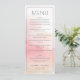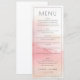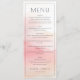 Este elegante cardápio de casamento apresenta um fundo com gradiente rosa suave com linhas nítidas e limpas e amplo espaço em branco para uma aparência sofisticada. O layout é orientado verticalmente, com seções claramente divididas por títulos serifados em maiúsculas e texto sans-serif simples que melhora a legibilidade. Campos personalizáveis permitem a personalização de nomes e datas, tornando-o perfeito para ocasiões especiais. O design minimalista transmite um ar de refinamento e expectativa, ideal para eventos formais como casamentos.