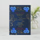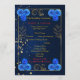 Adicione elegância à sua cerimônia com este lindo programa de casamento floral azul com uma luxuosa borda dourada. Projetado com delicadas flores de aquarela azul-marinho e uma moldura dourada sofisticada, este modelo de programa complementa perfeitamente temas de casamento azuis e dourados.