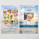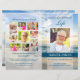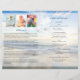 Programa de funeral tamanho carta azul pitoresco para homens, com uma bela fotocolagem. Inclui espaço para um obituário, ordem de serviço, poemas e muito mais para criar uma homenagem adequada para o seu ente querido. Todo o texto é fácil de editar e totalmente personalizável.