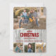 Este modelo de cartão de Natal plano com foto coloca suas fotografias no centro das atenções, sendo a foto superior maior e as três fotos inferiores recortes quadrados. As fotografias são emolduradas por uma moldura rústica de painel de madeira falsa cinza claro. No centro, há um texto estilizado em vermelho profundo que diz "FELIZ NATAL & PRÓSPERO ANO NOVO". Sua assinatura personalizada fica abaixo do texto de saudação. A parte de trás do cartão é cinza claro sólido correspondente. *Crédito da foto: Fotografia © Storytree Studios, Stanford, CA.