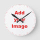 Este modelo oferece uma simples face do relógio com números. Basta adicionar sua própria imagem ao centro. Você pode adicionar qualquer imagem que quiser, mas o tamanho ideal é uma imagem horizontal 2500 x 2500 pixels. Veja nossos outros relógios para ver outras cores e designs, ou para ver alguns relógios acabados feitos.