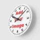 Este modelo oferece uma simples face do relógio com números. Basta adicionar sua própria imagem ao centro. Você pode adicionar qualquer imagem que quiser, mas o tamanho ideal é uma imagem horizontal 2500 x 2500 pixels. Veja nossos outros relógios para ver outras cores e designs, ou para ver alguns relógios acabados feitos.