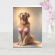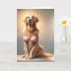Um modelo de lingerie do recuperador de ouros que veste um sutiã cor-de-rosa para um aniversário. O texto é editável.