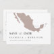 Este modelo de save the date de casamento DIY PARA IMPRIMIR apresenta um mapa do México em rosa e uma fonte manuscrita arrojada. Use este modelo para editar as fontes, cor da fonte e cor do fundo para atender às necessidades do seu evento. Mova o coração e o destino para destacar o local do seu casamento.