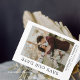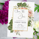 Este cartão elegante de Save The Date apresenta uma moldura dourada com uma rosa em aquarela e um ramo de folhagem como fundo do modelo. As palavras “Save The Date” estão escritas em fonte preta sobre um fundo branco. O nome do casal, data e local do casamento também estão incluídos em fonte preta sobre um fundo branco. Uma foto elegante do casal é adicionada ao cartão com seus nomes e a data e local do casamento escritos abaixo.