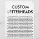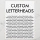 Vazio BÁSICO personalizado, impresso personalizado, com Modelo de 11" x 8,5" (tamanho de letra padrão dos EUA). Design, crie, faça o seu. Sua foto, imagem, texto na impressão de cheio de cheio de alta qualidade, borda a borda, na parte frontal da cabeça de letra, para desenho vertical ou horizontal. Compatível com impressoras a jato de tinta e laser. Escolha entre cinco tipos diferentes de papel: Basic, Felt, Reciclado, Speckled, Linen. TIPO DE PAPEL BÁSICO: O papel de peso de texto de 80 lb tem um acabamento mate e contém 50% de conteúdo de reciclado (10% de consumidor poste e 40% de lixo pré-consumidor). Adiciona uma aparência profissional nítida às suas cartas, documentos e correspondência. Melhor para cartas de negócios e pessoais, artigos de papelaria, convites para casamento e caixas de cartão de Natal.