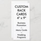 Modelo personalizado de Vazio de RACK CARD de 9" x 4" impresso. Design, crie, faça seus próprios cartões de rack, cartões de menu, programas de casamento, promocionais. Sua foto, imagem, texto, logotipo de alta qualidade, sangramento de cheio, impressão de cor de cheio em ambos os lados da placa de rack. estoque do cartão branco de 4" l x 9" w (retrato) ou 9" l x 4" w (paisagem) de 100 lb com acabamento de brilho. Melhor para marketing de negócios e projetos e promoção, para menus e programas de casamento.
