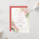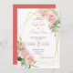 Arca rosa rosa rosa rosa pincelada cor-de-rosa com quadro geométrico geométrico modelo de convite floral para casamento com código QR RSVP atrás.