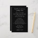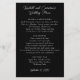 Barato de casamento em preto e branco neutro. O papel preto com modelos de texto branco tem os nomes do casal com o título do menu no topo. Todos os itens de menu são adicionados em um parágrafo de solteiro. Adicione espaços como preferido a texto par. A data do evento está na parte inferior do documento.