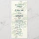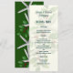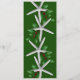 Modelo de menus tropicais do casamento de Natal. O tamanho 4 x 9 polegadas é alto, com estrelas brancas e folhas ocas, em ambos os lados. Cor esbranquiçada com texto azul escuro para personalizar em três lugares, com nomes no topo. Título do menu "Wedding Menu" e lista de comidas servidas sob a forma de parágrafo. Adicionar ou remover espaços para ajustado da lista de itens de menu. O reverso é verde-escuro. Você pode baixar este design para uso pessoal.
