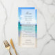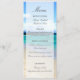 Para os noivos encadernados da praia, está aqui um fácil personalizar o modelo do menu do casamento para sua recepção. Oceano azul Sparkling no fundo com Sandy Beach e as nuvens azuis e brancas. Foto bonita; bonito para seus partidos da praia!