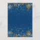 Azul e ouro, menu janto de Natal da família. Design azul escuro com flocos de neve brancos e dourados. Personalize com o nome da família e liste as entradas de janto de férias. Os cantos arredondados podem ser alterados, e o papel pode ser atualizado e os envelopes serão incluídos.