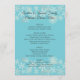 Modelo de janto de Natal azul, da família com flocos de neve brancos. Texto de script, cinza escura no topo para nome de família ou nomes, com título e data, se desejar. Adicione todos os itens de menu usando a grande área de modelo com espaços, ou nenhum, dependendo das linhas necessárias. O texto de exemplo usa letras maiúsculas para cada cabeçalho de seção. Inclua o cozinheiro/padeiro de cada item de comida para obter mais diversão. Outros tamanhos podem funcionar, além de opções de borda/canto, além de upgrades de papel. Não deixe nenhum texto se aproximar das bordas ou ele pode ser cortado na impressão.