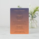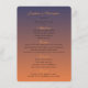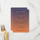 Este cardápio de pôr do sol cria uma sensação adorável de noite quente e é perfeito para a sua recepção ou festa de janto. Tem um belo trabalho de arte azul e laranja com estrelas pequenas. Há também modelos para quatro iniciantes, quatro pinos, quatro sobremesas e várias bebidas prontas para a seleção do menu. Estas estão em uma fonte clara e fácil de ler.