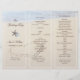 Coração na modelo do programa de casamento de areia. Dobraram em três para criar um programa de casamento único e belo tema da praia. Personalize facilmente usando as linhas de texto modelo fornecidas. Dois estrelas-do-mar decoraram a terceira frente que tem quatro modelos usando texto marrom. A água do oceano pode ser vista no topo batendo contra a praia com um grande coração desenhado na areia da praia. Esta imagem será impressa APENAS EM UM LADO. O inverso será simples.