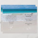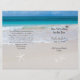 O casamento de praia dobrou o programa com texto em quatro páginas. O papel mede 8,5 por 11 polegadas e uma cena de praia é impressa em ambos os lados. Estrelas brancas, ou estrelas-do-mar, decoram a frente e atrás. Modelos de texto criam uma página frontal, dentro de duas páginas e uma página traseira. O texto preto é impresso sobre areia da praia e água azul tropical. Este item tem seleções de papel.