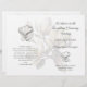 Modelo do programa de casamento dobrado com fundo de flores de magnólia. Corações entrelaçados decoram a frente, sob os nomes, e na última página acima da mensagem "obrigado você" para os convidados. A magnólia meridional é uma flor grande e branca e esta design é perfeita para qualquer casal casando no sul.