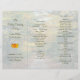 A fotografia da temporada Cena de Queda de uma rodovia traseira alinhada por árvores constitui o fundo deste programa de casamento a ser dobrado em três. O texto modelo verde escuro é fácil de mudar e personalizar para sua cerimônia. Será aberto como um acordo com todas as impressões - imagens e texto - APENAS num dos lados. Escolha qualquer tipo de papel.