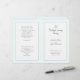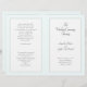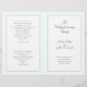 Modelo do programa de casamento dobrado para uma cerimônia católica. Este programa de aparência em camadas contém painéis brancos sobre verde-claro. Cada página tem espaço para muitos textos para acomodar uma cerimônia tradicional de casamento da igreja. A última página (verso do programa) inclui uma seção para a escritura (amostra é "o amor é paciente" de 1 Corinthians) e uma mensagem de obrigado-você da noiva e do noivo.