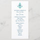 Modelo do programa de cerimônia de náutica. Modelo clássico com tipografia na moda e logotipo âncora. Parte de um conjunto de coleções de temas que combinam. Design de papelaria tradicional para casamento de classe. Inclui nomes personalizados, data, local, ordem do serviço de cerimônia e festa de casamento. Paleta de cores azul e branca ceruleana.