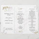 Dourado trabalho de pergaminho, redemoinho, modelos do programa de casamento. Programa de cerimônias triplas com cinza e design floral com gráfico de ouro em todo o fundo. **O reverso não tem imagens nem impressão.