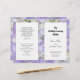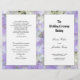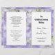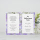Modelo de cerimônia de núpcias católicas a dobrar ao meio após a compra. As flores de hydrangea roxa lavanda formam um fundo bonito, com painéis brancos que contêm texto preto.