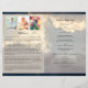 Programa de funeral azul-céu estonteante para homens ou mulheres, com uma bela colagem fotográfica. Inclui espaço para um obituário, ordem de serviço, poemas e mais para criar um tributo adequado para o seu ente querido. Todo texto é fácil de editar e totalmente personalizável. Este programa funerário impressão de dois lados em uma folha de solteiro de papel Carta (8,5 x 11 polegadas). Quando dobrado, isso cria um livreto com 4 páginas de metade do tamanho da letra (8,5 x 5,5 polegadas por página).