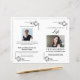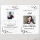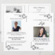 Programa clássico de funeral preto e branco com detalhes belíssimos do canto do ornamentado. Este modelo inclui espaço para uma grande foto na primeira e na segunda páginas, uma foto acima do texto do obituário na dentro e uma ordem de serviço. Todas as imagens de texto e fotos podem ser personalizadas para que, se você optar por usar este layout ou personalizá-lo de acordo com sua própria preferência, seja fácil criar um belo programa para seu ente querido. Este programa funerário impressão de dois lados em uma folha de solteiro de papel Carta (8,5 x 11 polegadas). Quando dobrado, isso cria um livreto com 4 páginas de metade do tamanho da letra (8,5 x 5,5 polegadas por página).