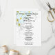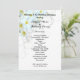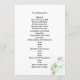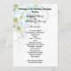 Modelo do programa de casamento Flat Havaiano. Branco com flores de plumeria branca e texto preto em ambos os lados.