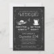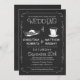 Convites do casamento do quadro -- O chapéu sinamay bonito para a noiva e o chapéu alto considerável e o laço para o noivo, com os rolos encaracolado festivos e tipografia rústica extravagante fazem um convite preto e branco memorável do casamento. Adicione seus nomes e informação wedding neste modelo fácil de usar. A tipografia misturada elegante do estilo do giz e da tipografia pode ser alterada para seu tema retro formal ou semi-formal do casamento, perfeito para casamentos modernos na moda com um toque do divertimento de encanto sofisticado para os noivos tradicionais. Contacte-nos por favor para a ajuda com personalização se você precisa a sala adicional para seus detalhes do casamento.