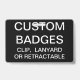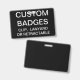 O costume imprimiu personalizou 3,38" x 2,13" modelo vazio do CRACHÁ (com fundo PRETO - mude a toda a cor). O design, cria, faz seus próprios. Sua foto, imagem, texto, logotipo, gráficos na borda-à-borda da cor completa imprime no design horizontal ou vertical da parte dianteira e da parte traseira -. Feito do plástico do PVC, os bens, não se desvanecerão nem não se rasgarão. Disponível com correia, grampo do metal, o grampo retrátil, ou o crachá somente.