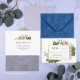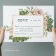 Esta elegante placa RSVP de casamento apresenta uma estrutura dourada com um rosa de aquarela e um galho verde como fundo modelo. As palavras palavras convite são escritas em preto sobre fundo branco.