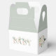 Bela e elegante B-A-B-Y com flores cor-de-rosa e pinceladas e verde misturado com eucalipto. O rico "Boy" é feito em um roteiro de rico. Simplesmente atordoante para uma caixa de favor. Qualquer convidado adoraria receber uma caixa de favor tão bonito quanto esta. Perfeito para o seu evento especial.