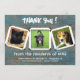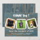 Cartões de agradecimento do abrigo de animais com espaço para três fotos. Agradeça as pessoas por doações ou por comparecerem / voluntariararem em um evento de arrecadação de fundos. Design de madeira azul rústico com três molduras de álbum de fotos antigo. Adicione três fotos de alguns dos residentes do abrigo. O texto é branco com um grande "obrigado" no topo. E abaixo das fotos, "Dos residentes de (nome do abrigo)". Inclua também texto menor com mais informações conforme necessário. O verso também tem uma imagem de madeira rústica com uma ferradura. Este design também pode ser adquirido como download instantâneo.