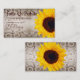 Design suas próprias cartões de visitas deste simples modelo de cartão de negócios, que é mostrado em um fundo giratório marrom elegante com um lindo girassol amarelo com impressão a cores de cheio em ambos os lados sem custo adicional. Escolha entre uma variedade de tipos e tamanhos de papel para a impressão de cartão de visita. Faça seus próprios cartões de visitas exclusivos usando o botão "Personalizar a TI" para carregar seus próprios logotipos, fotos ou gráficos de design.