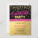 Jogando uma festa de solteira? Precisa de ideias? Obtenha estes modelos modernos e modernos personalizados para que você possa fazer ISSO facilmente. Rosa quente com confete de ouro falso com fundo de folha de ouro preto e falso e brilho. Barato, mas não de aparência barata. Personalize estes convites para a próxima festa. A parte traseira do cartão também tem texto para que você possa adicionar mais texto em caso de instruções especiais, como uma bachelorette de fim de semana!