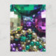 Foto de miçangas de Mardi Gras. Os arremessos apresentam as cores dourada, roxa e verde de Mardi Gras ou Carnaval. Personalize a parte de trás deste cartão postal com o seu próprio texto ou imagens. Faça convites ou convites personalizados para cartões postais de festas!