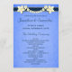 Rustic Blue Floral © Sunny Mars Designs. Único clássico, típico personalizável, vintage personalizável, rusty azul elegante, modelo do programa de casamento, com bordas de fita, modernas bonito flores brancas em um fundo antigo de papel de pergaminho.