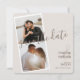 Estes cartões de noivado de 2 fotos minimalistas são a forma perfeita de apresentar sua data de casamento aos seus amigos e familiares. As cartas contêm uma tira das suas fotos favoritas e, em uma fonte de script, 'salve a data' e os detalhes de modelo do próximo casamento. Os estilos de fonte, as cores, os tamanhos e a cor de fundo podem ser alterados clicando no link personalizar depois de personalizar.