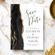 A borda esquerda deste elegante casamento moderno salve o cartão de data apresenta uma borda de agata preta aparada com falso brilho dourado. O texto personalizável combina a escrita manual de cinzas de carvão, as fontes em copperplate e itálico em um fundo branco. O reverso é sólido fora do preto.