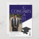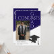 Celebrate your achievement with this modern blue and white geometric Congrats Grad photo graduation announcement design. The front features a bold photo layout, while the back includes a stylish cap and diploma silhouette. Perfect for high school or college seniors wanting a minimalist, professional look. Use a color or black and white photo. Created by Simply Farmhouse Press.
