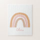 Modern Boho Rainbow Name Jigsaw Quebra-cabeça. Mão de design original pintada em uma paleta de blush, cobre e esticada neutra, mas tenra. Acentuado com seu nome personalizado na parte inferior.