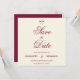 An elegant, classic Save the Date featuring a delicate bow graphic and rich burgundy script on soft cream paper. Perfect for couples planning a timeless and formal wedding.